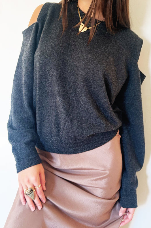 Crush Dolce Ribbed Crew Sweater - Gray