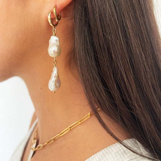 Double Baroque Pearl Hoops