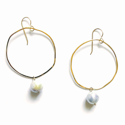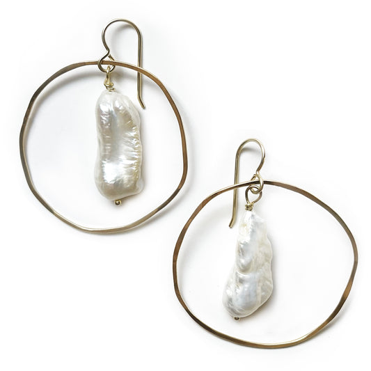Gold Circle Earrings with Baroque Pearl Drop
