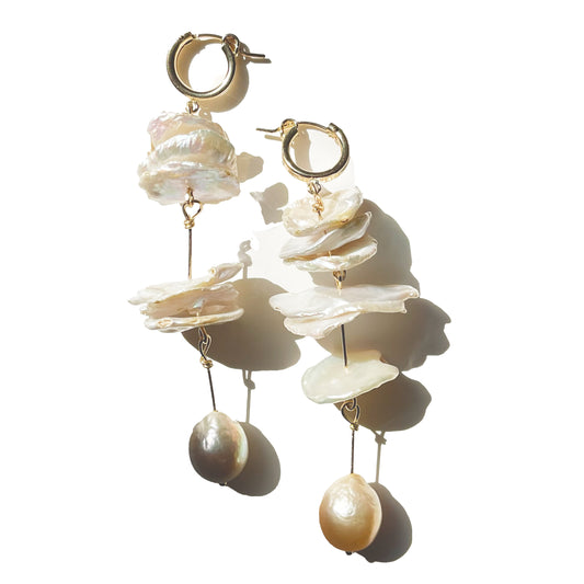 Mixed Shells with Pearl Hoop Earrings
