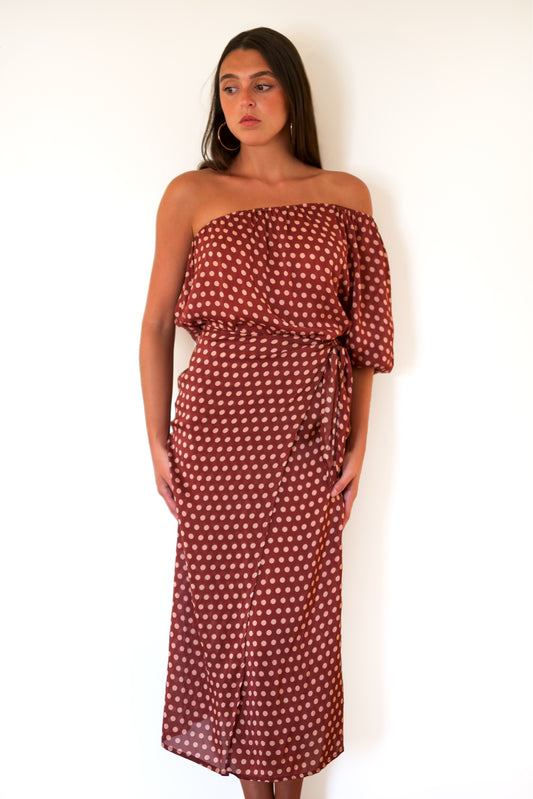 Natalie Martin May Wrap Skirt - Polka Dot Cappuccino