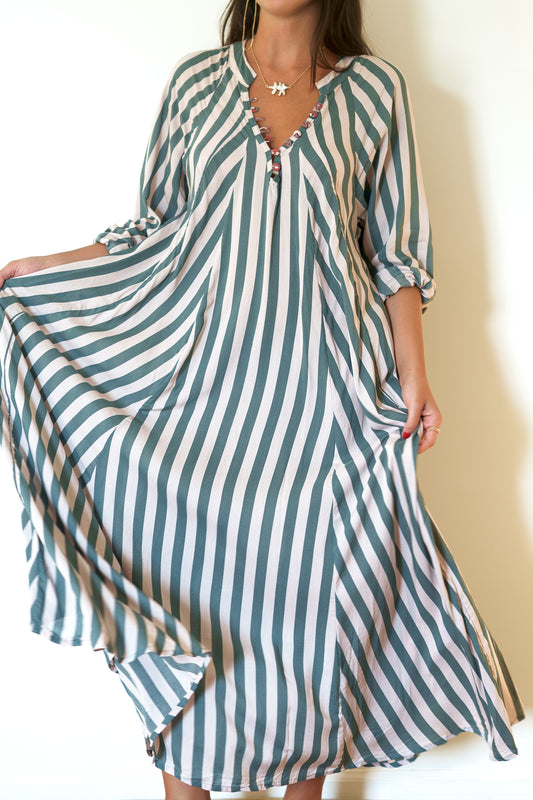 Natalie Martin Fiore Maxi Dress - Thick Stripe Jade