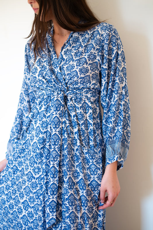 Natalie Martin Nico Long Sleeve Maxi Dress - Fleur-De-Lis-Blue