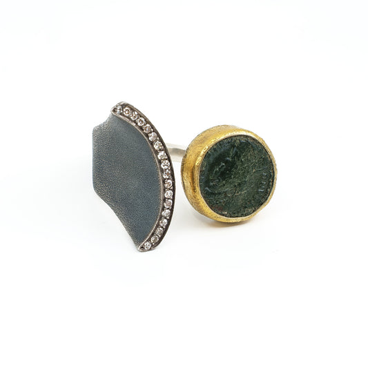 BORA Sterling Silver and Gold Accent Ring with Ancient Roman Coin and Diamonds