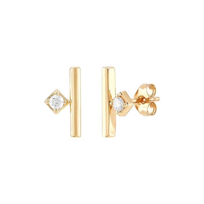 Each of these finished 10-karat yellow gold post earrings feature a bar and are set with one round white diamond (I3 clarity/G–I color; 0.1CTTW).