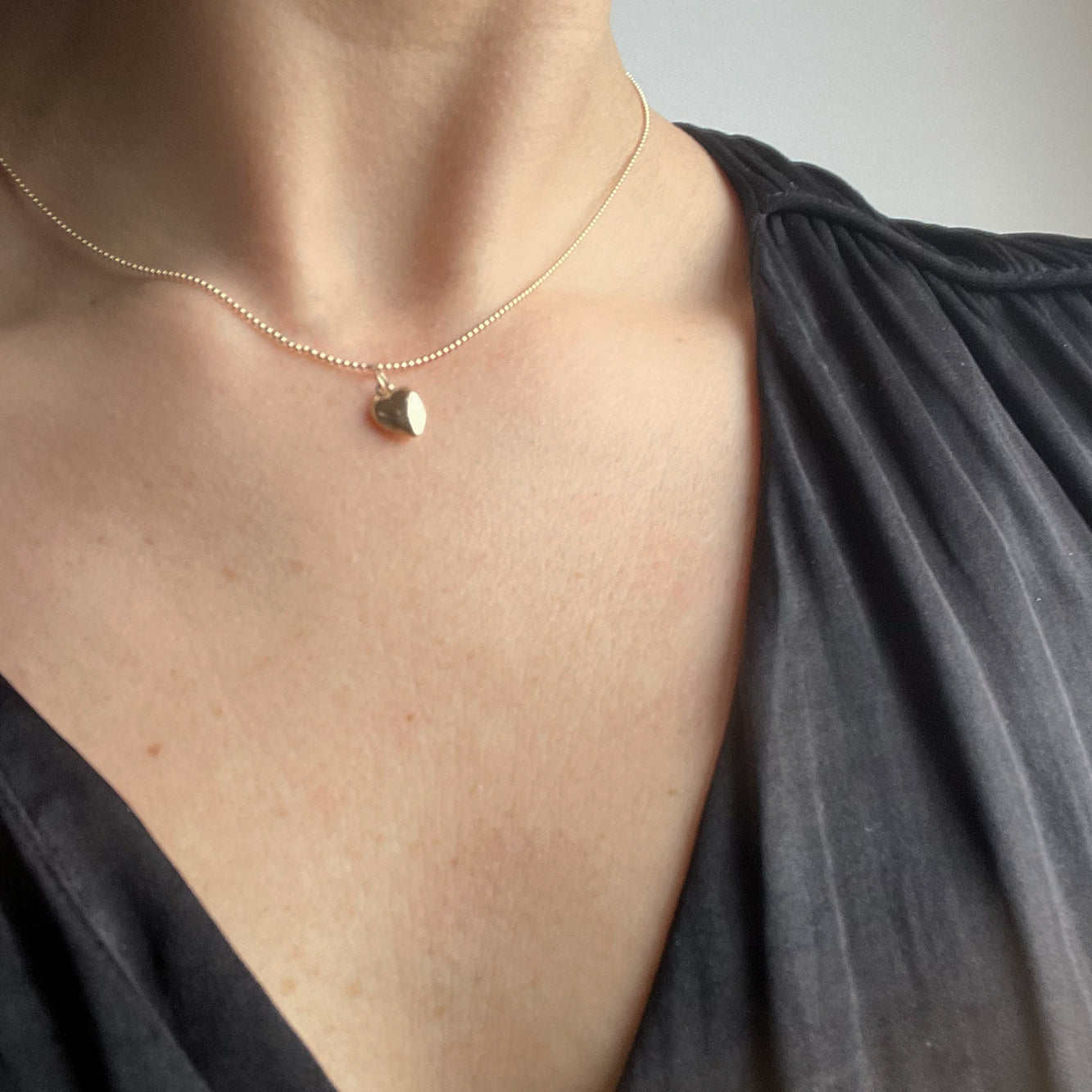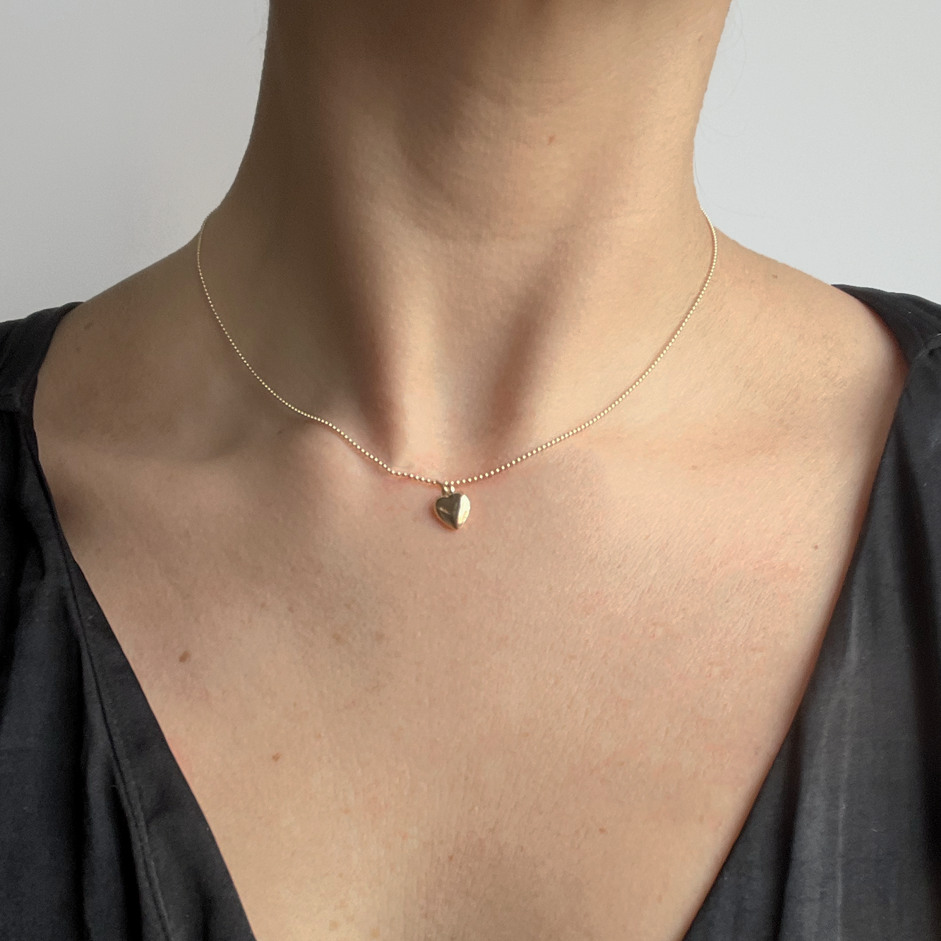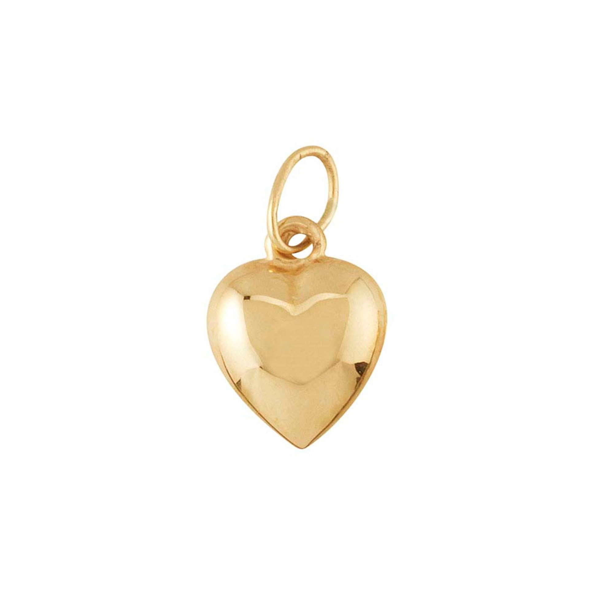 This small hollow 14-karat yellow gold puffed heart pendant is ideal for necklace designs, as a charm for bracelets and anklets or as a drop for earrings. The pendant is made from two matched domed hearts soldered together to form a 3D finding, then brightly finished; it gives the bright yellow of gold, while being lightweight and more affordable than a solid piece. This pendant includes an oval jump ring.