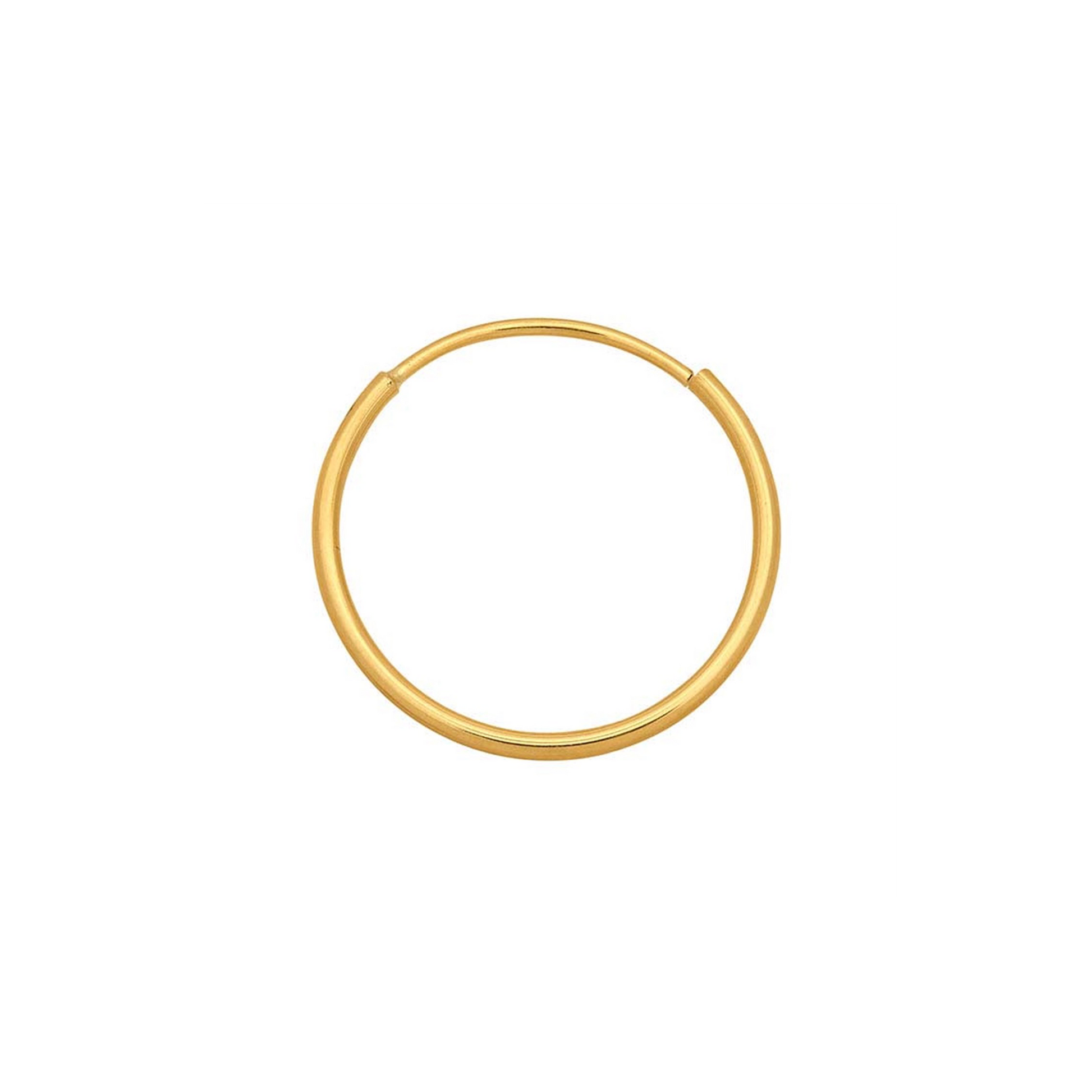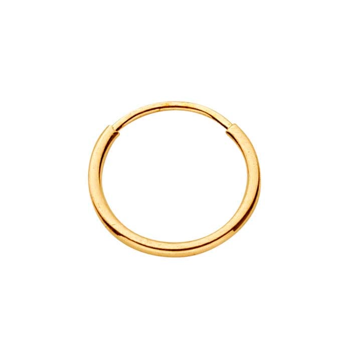This 14-karat yellow gold endless hoop earring is designed with an 'endless' look that minimizes the visibility of the wire closure for a smooth, attractive finish. The earring is crafted from 1mm tubing, making it lightweight and comfortable to wear. Hoop earrings circle the ear from front to back and offer a wide variety of design options.