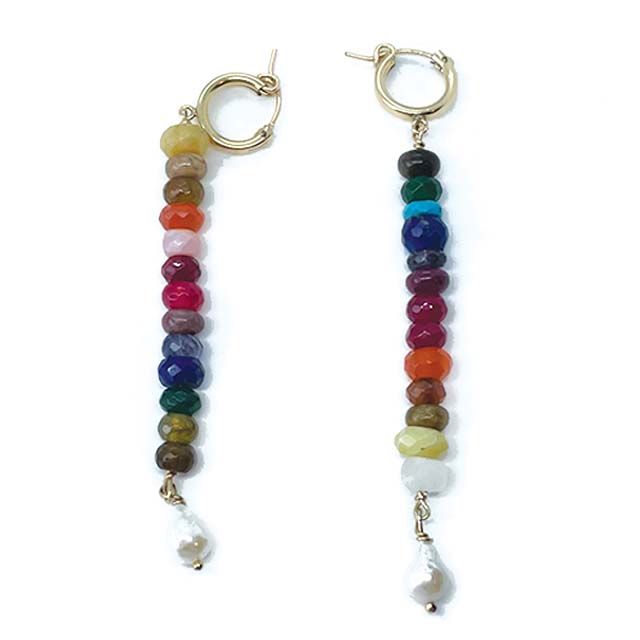 Colorful Gemstone Earrings with Pearl and 14k gold filled findings.