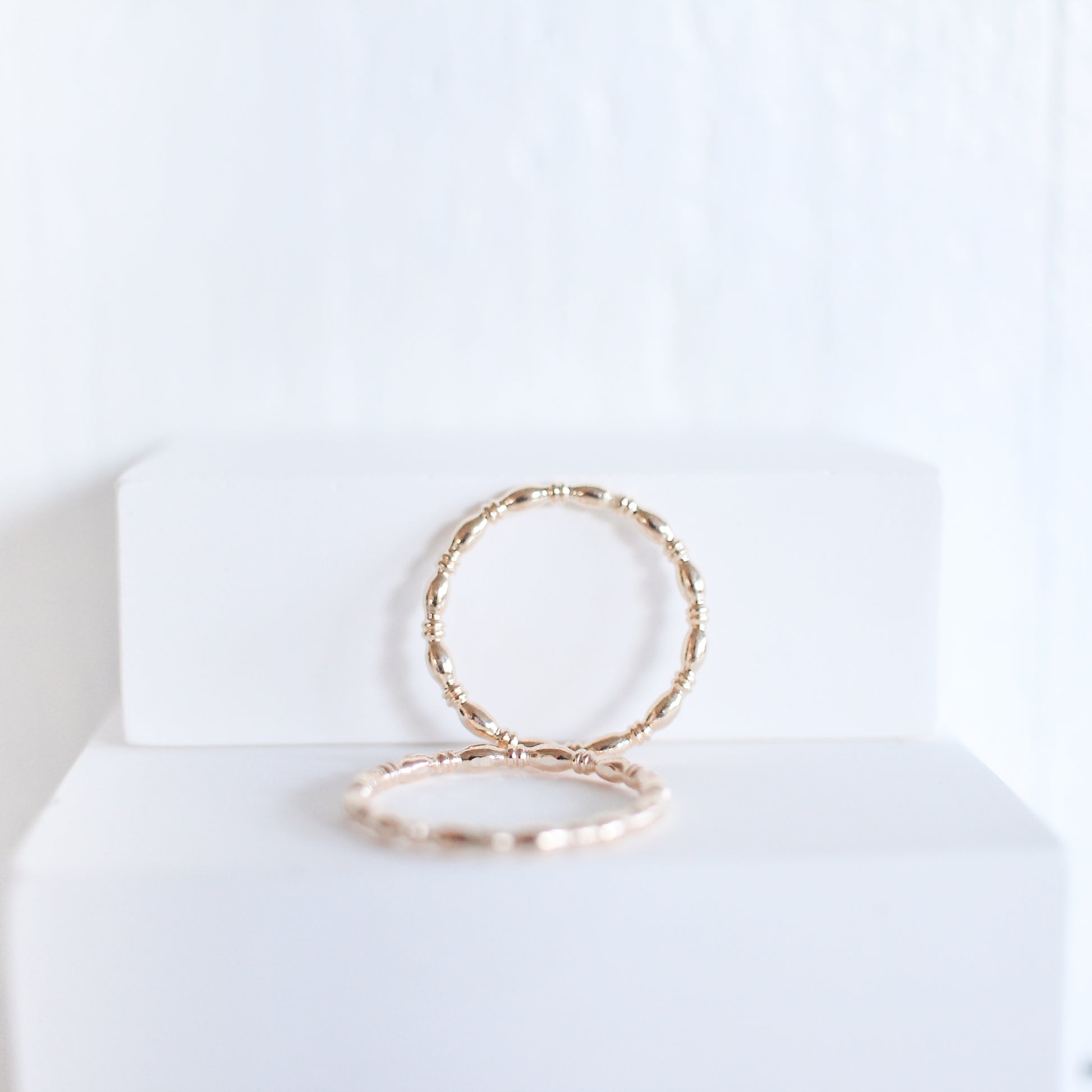 Bamboo, or rice bead, patterned ring. 12k gold filled. Made in Israel.