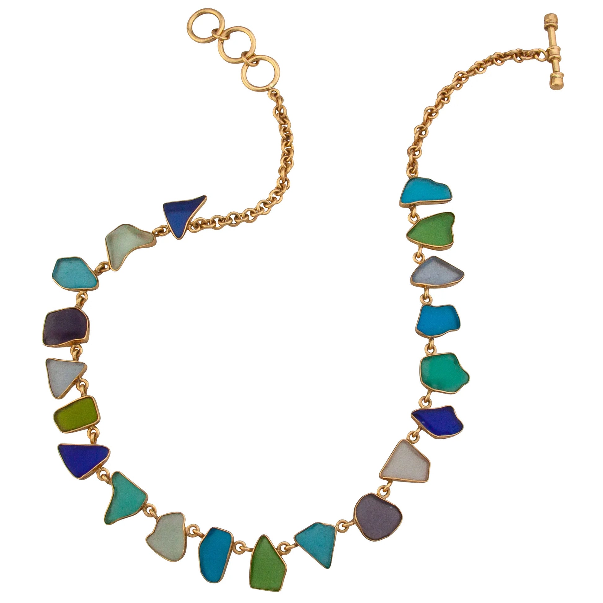 - Note: Due to the one-of-a-kind nature of the recycled glass, the color, size, and shape will vary from the images shown. Each necklace will look different.
