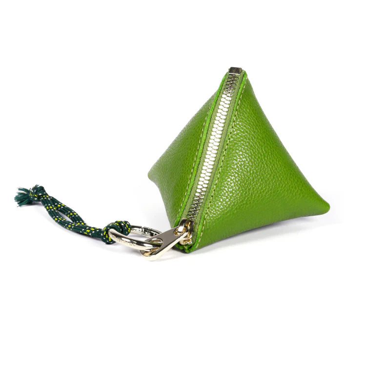 Unique and compact, the Pyramide Grainé purse captivates with its unexpected geometric shape and textured grained leather. Designed as a mini accessory that's both practical and decorative, it keeps your small belongings close at hand.