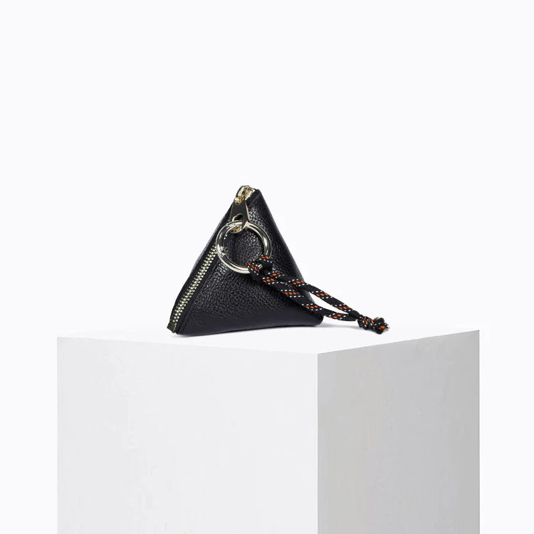 Unique and compact, the Pyramide Grainé Coffee purse captivates with its unexpected geometric shape and textured grained leather. Designed as a mini accessory that's both practical and decorative, it keeps your small belongings close at hand.