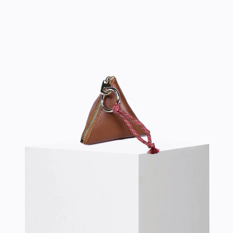 Unique and compact, the Pyramide Grainé purse captivates with its unexpected geometric shape and textured grained leather. Designed as a mini accessory that's both practical and decorative, it keeps your small belongings close at hand.