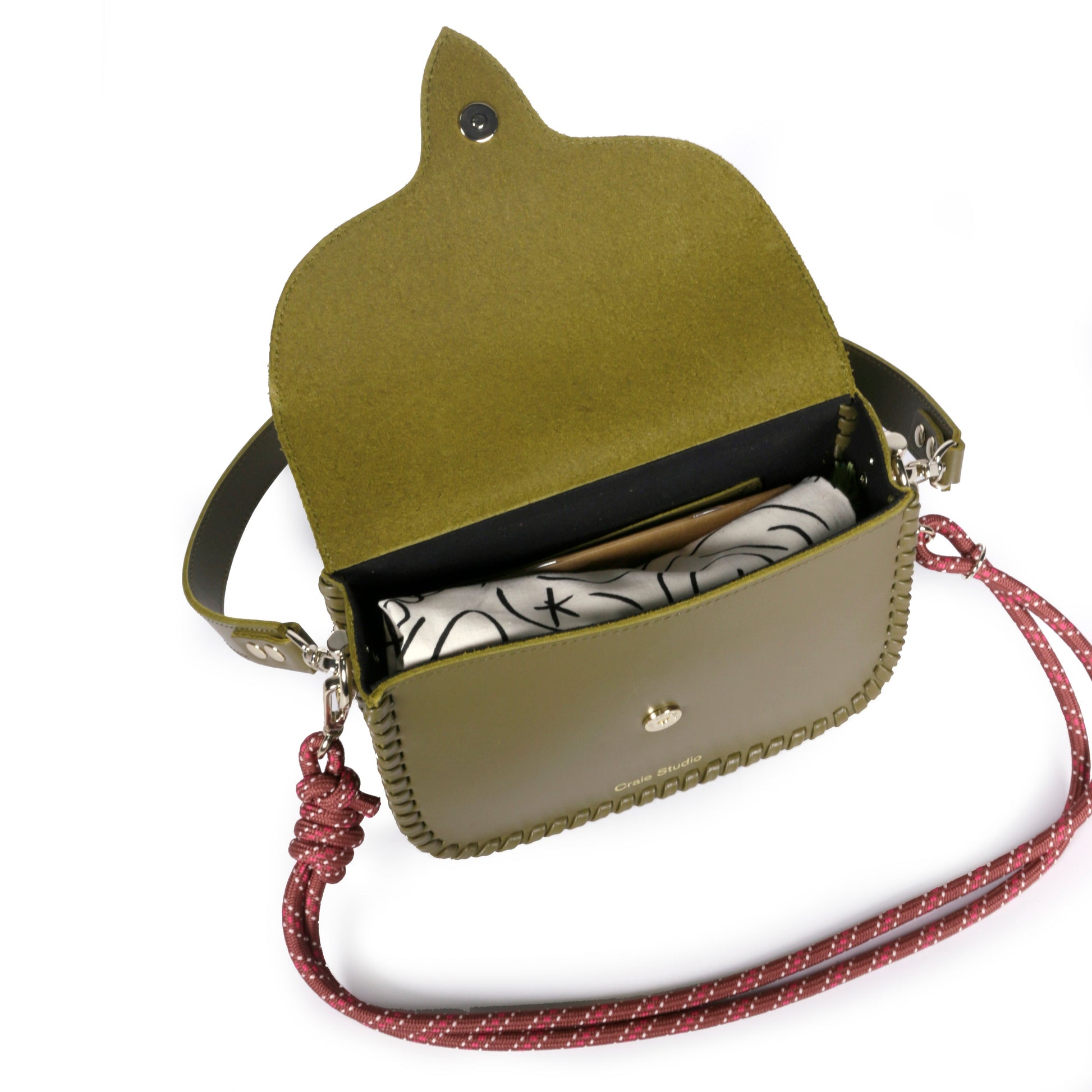 Featuring two removable and adjustable shoulder straps – one in leather for a classic look, the other a climbing rope for a bolder look – this model adapts to all occasions. Its flap closed by a discreet magnet and its organic cotton lining make it a companion as practical as it is elegant.