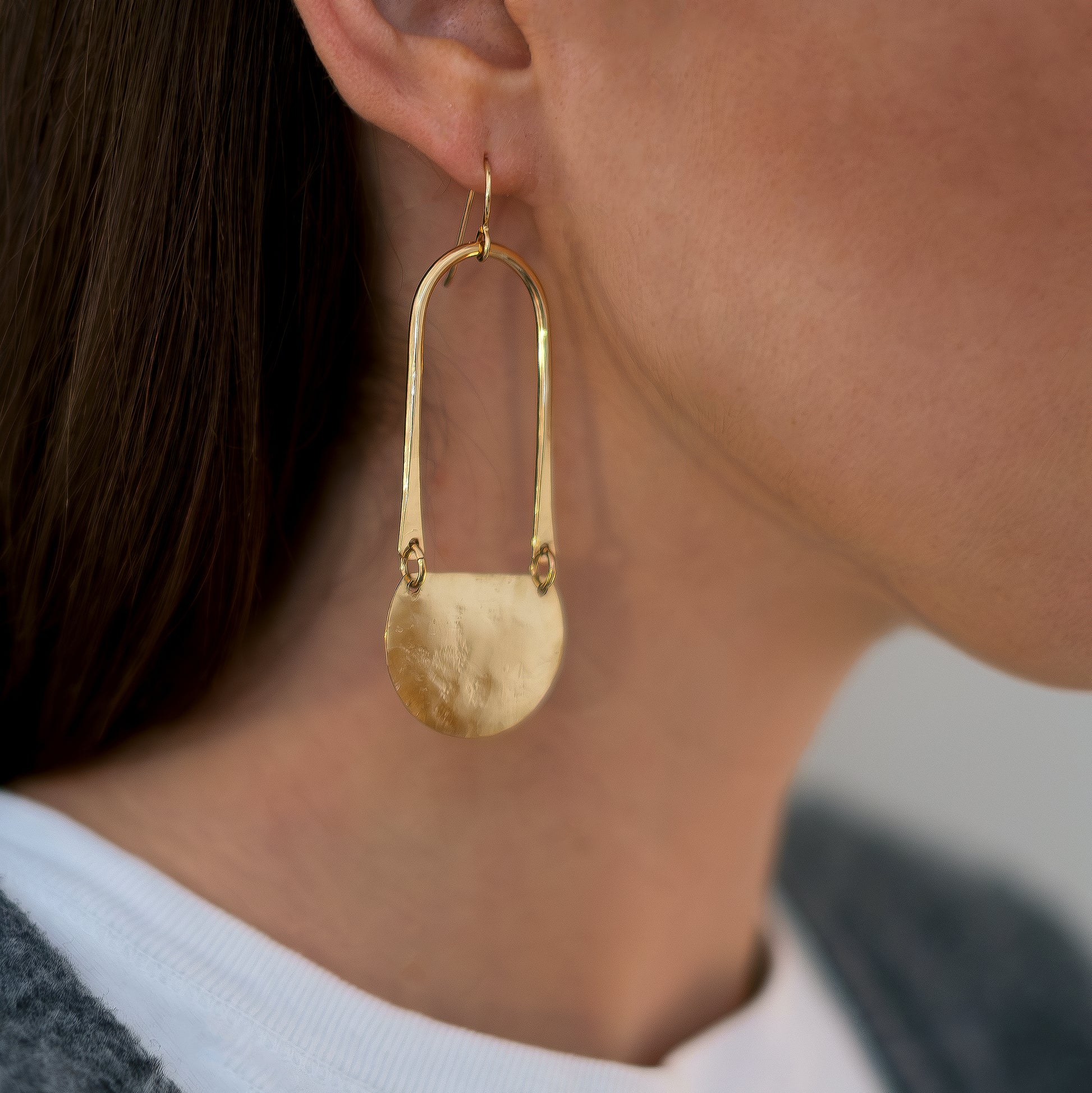 One of our best selling styles--these look good on everyone and make a great gift. Choose the smaller style for an everyday earring, and the larger style for more of a statement. Available in 14k gold fill or mixed metal with the bottom drop in oxidized sterling silver. 1.5" (small) 2.25" (lg)