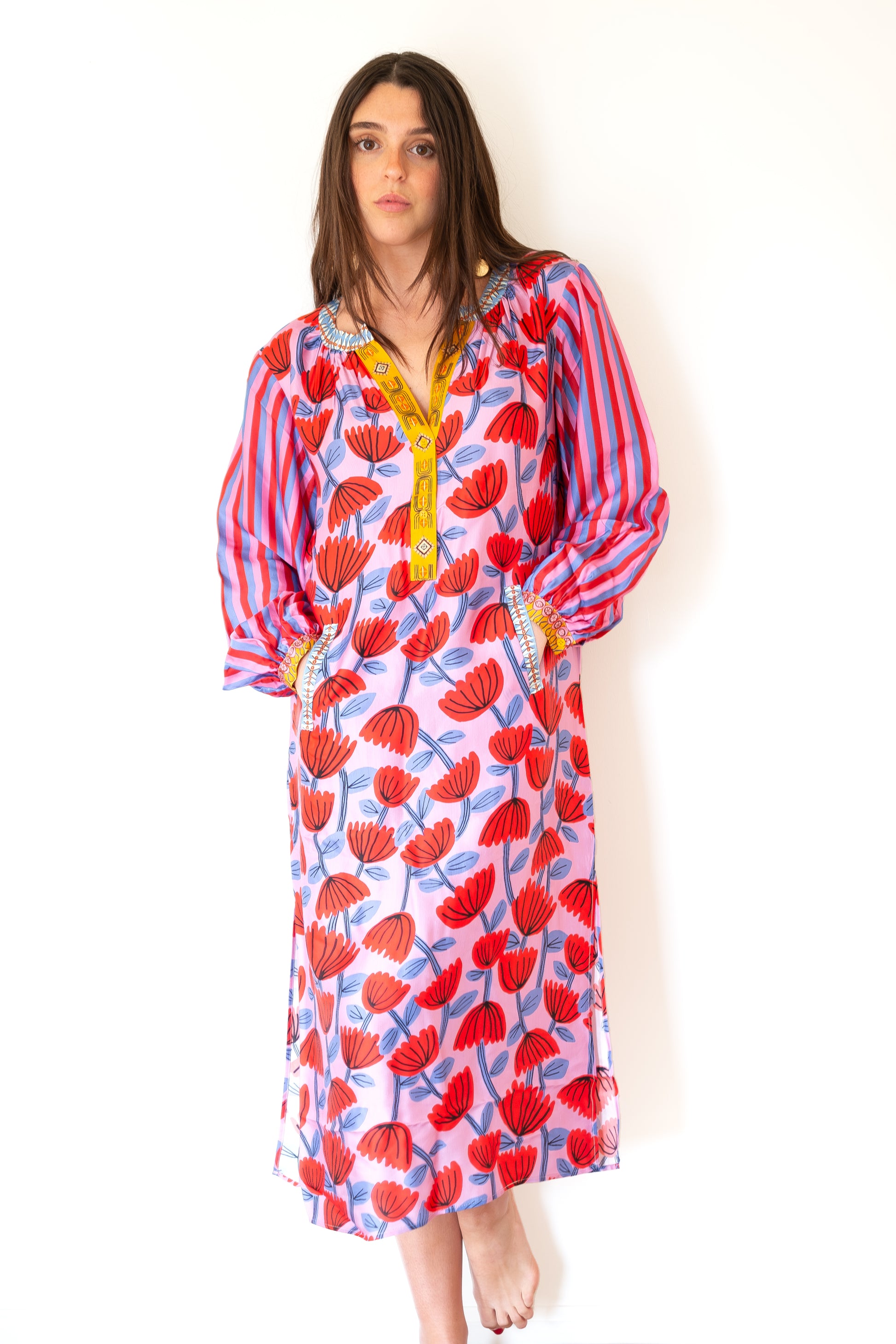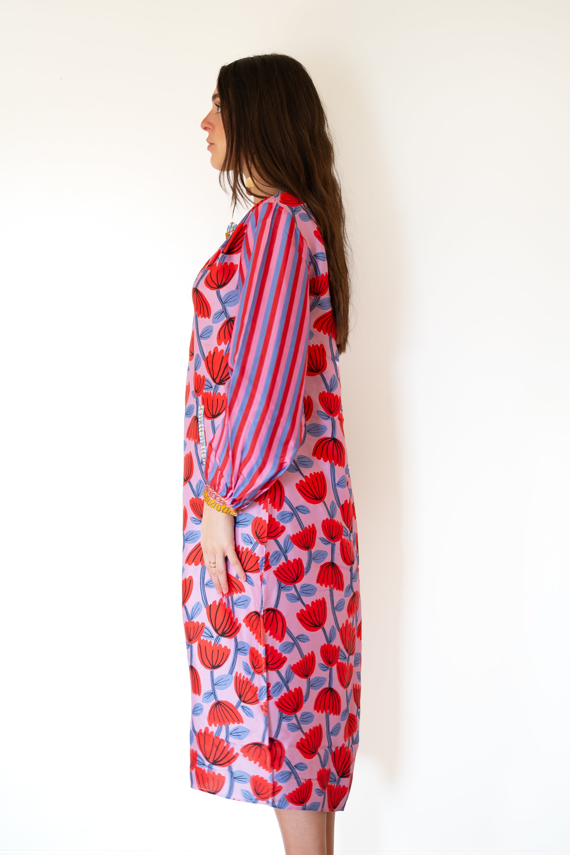 ME369 Amelie Deep V-Neck Dress - Red Lipstick