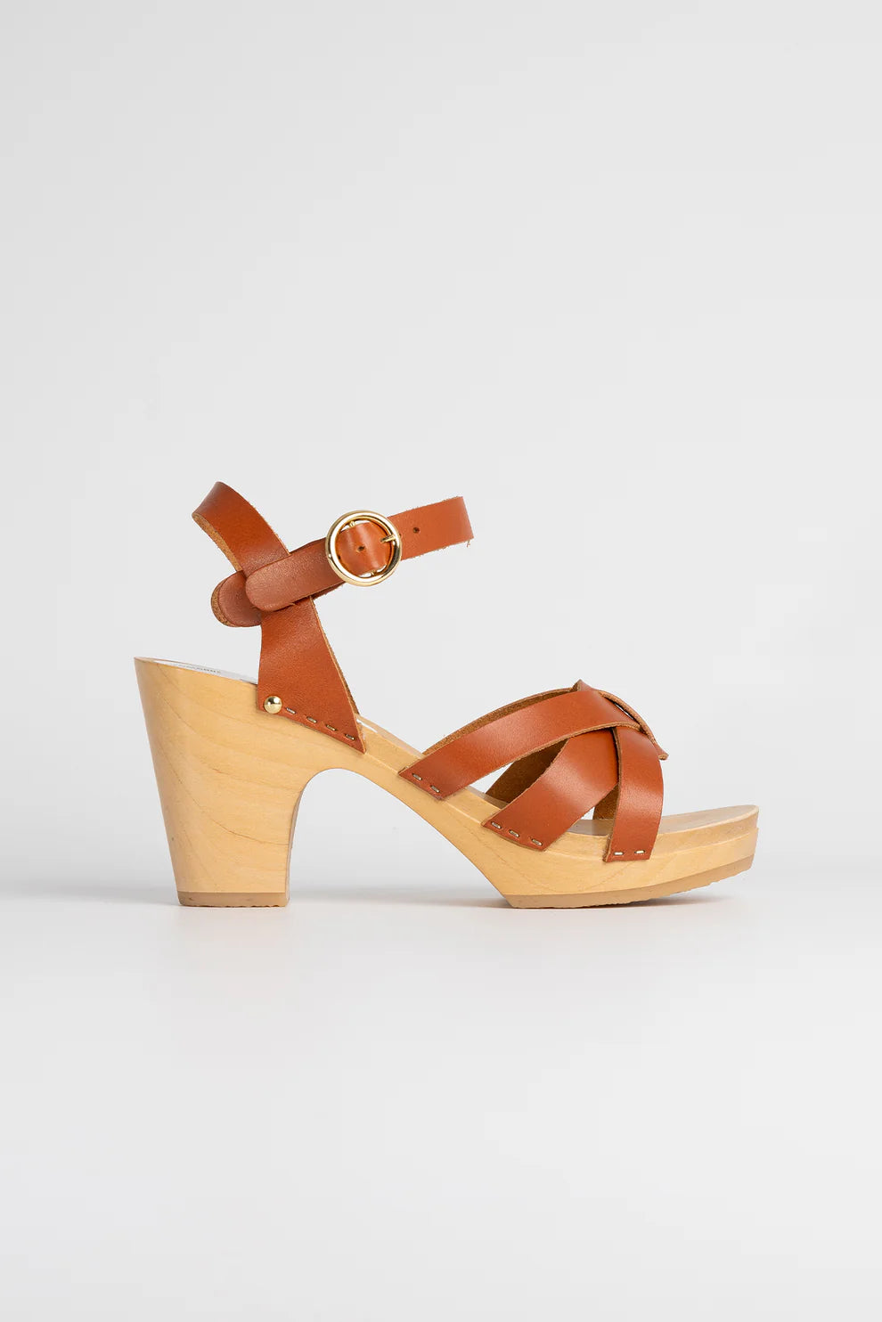 The Yale clogs have an adjustable ankle strap that fastens with a fine, round, golden buckle. The linden wood soles make it a very lightweight and comfortable clog.