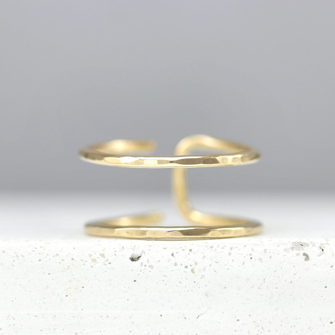 Get the look of a double toe ring with the ease of one piece. Adjustable in the back for one size fits most. It has a slight hammered texture for extra sparkle. 14k gold filled. Band is 1mm wide.