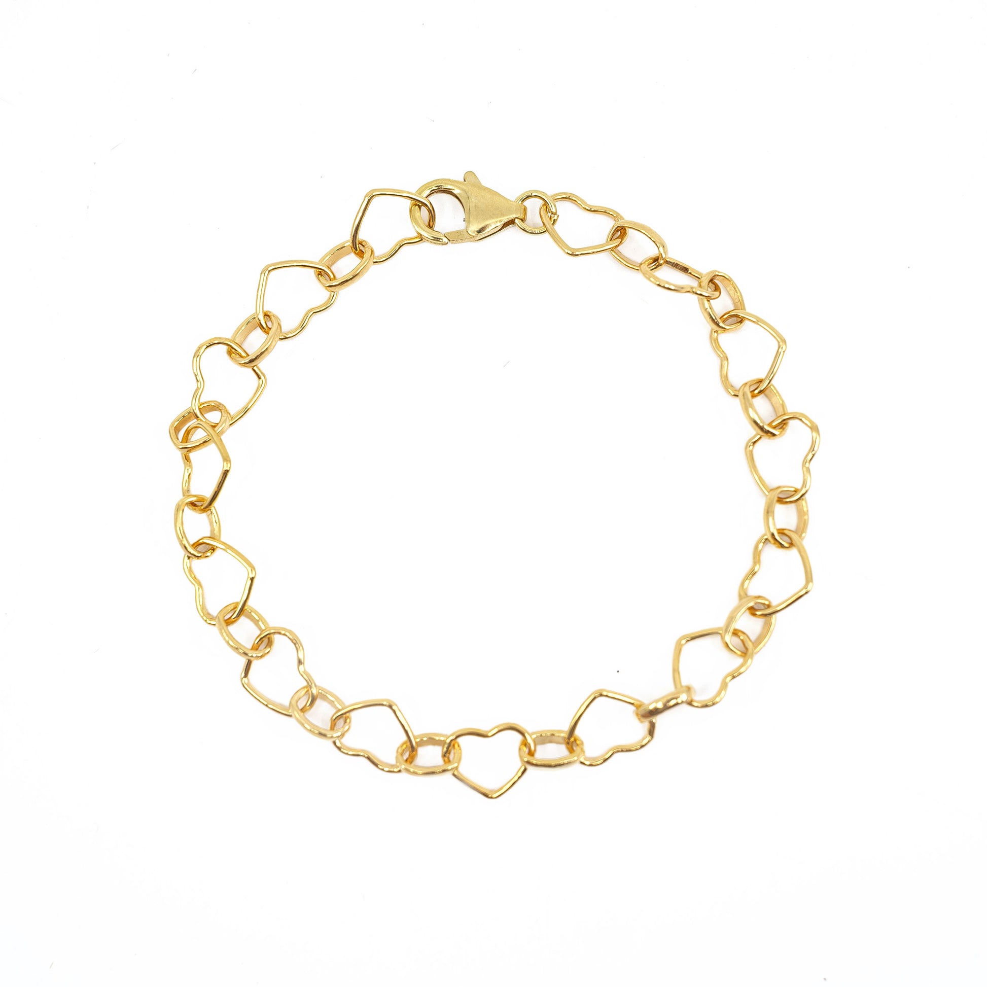 14k gold filled heart and link chain bracelet with lobster clasp.